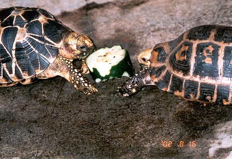 大約兩年前一個傍晚,在大直河濱公園看見一位先生,帶著一隻鬆獅狗和一顆星龜蹓狗也蹓龜鬆獅狗我看多了,但是那隻美麗的烏龜我是未曾見過二話不說,直接殺到誠品找尋有關烏龜的書籍,這下才了解原來那隻龜叫印度星龜(也許是緬星)是陸龜的一種,原來世界上有人養陸龜當寵物,那真是個福音接下來展開尋龜行動,開始在各大水族館找,但都不得其門而入直到在網站上認識一些龜友,也買到了我生平第一隻烏龜蘇卡達,當時他只有8公分