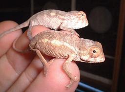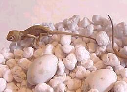 初生之七彩變色龍與尚未孵化的卵                            出生三週的七彩變色龍