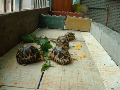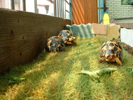 飼養幅射也不過短短數月,在愚者養陸龜第三個年頭的一次偶然機會接觸牠們,起先在牠們高貴身價的陰影下總不敢輕易做進一步的奢望,但因想換出其他陸龜及龜友周轉有難的機會下,幅射終於與我做第一次的接觸!之後飼養的整個過程可說是撲朔迷離、迷濫成癮,糊里糊塗的我現在飼養四隻幅了!喜的是跟牠們一起真的很棒,憂的是沒錢的日子真的很難過!