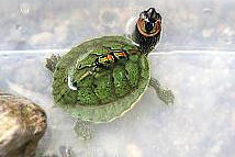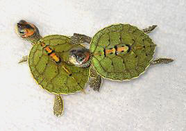 雌雄辨別可以由尾巴來分辨,雌龜尾巴較為短小,雄龜粗大.雌龜每窩可產3-5顆蛋,約80-100 天左右孵化.飼養幼龜水深最好不要超過龜龜直立的高度以免幼龜溺水.