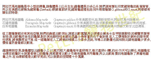 阿拉巴馬地圖龜耳部斑紋有如倒3形狀 |