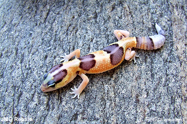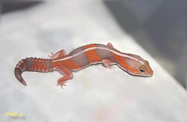 Geckos也同時在發展這個品系.值得注意的是,這兩種品系都屬於雙顯性基因(Co-dominant),所以配上白化或橘白化肥尾守宮將有希望培育出全橘化的肥尾守宮,