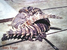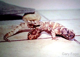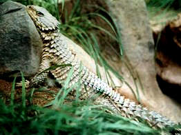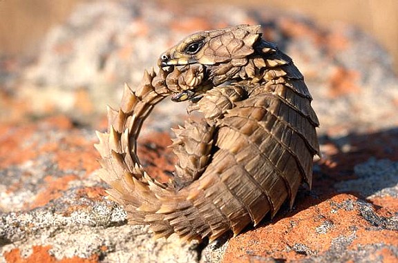 犰狳蜥因為避敵方式酷似哺乳類中的犰狳而得名.屬於日行性的小型蜥蜴.通常以家庭為單位聚集在多岩沙漠區域的岩堆間棲息.遇到掠食者便快速衝進石縫中躲藏.躲避不及的犰狳蜥就會將尾巴含在口中,將身體捲成一個帶刺的圓球以保護脆弱的腹部,這種自保措施與犰狳一模一樣.在哺乳類和爬蟲類中都有避敵方式如此神似的動物,確實是自然界少見的巧合.