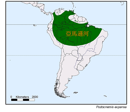 巨人側頸龜的分佈區廣及整個亞馬遜水系