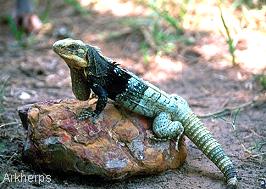 成體體色黝黑而也被稱為黑鬣蜥 |