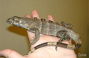 產的蜥蜴,經過大約90天,蛋便孵化.初生幼體全長約在15公分左右,可以麵包蟲,蟋蟀,小鼠餵食,綠鬣蜥或巨蜥飼料,