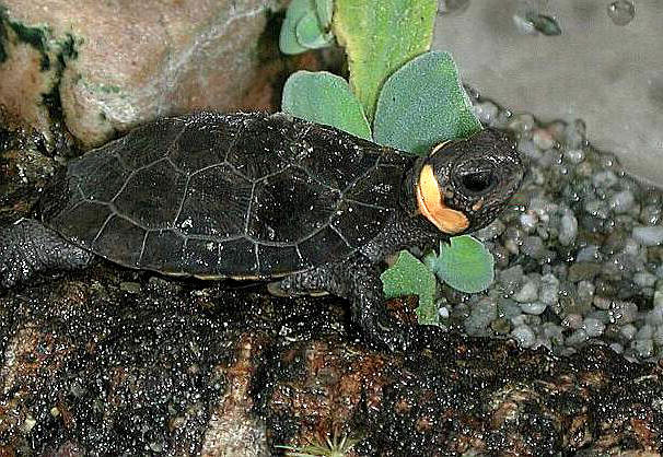 幼龜自初生便具有頸部的招牌黃斑 |
