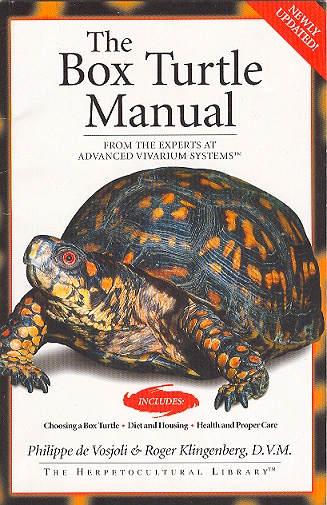 - 至於單一品種的書籍最近美國市場上剛好出現一系列的單行本,The Box Turtle Manual只是其中之一.都是舊書新編,雖然圖片的部份以黑白為主,不過文字內容則十分充實,舉凡蜥蜴,變色龍等都有單行本的介紹,整個系列至少有十多本,是比較方便挑選單一品種來研究.
