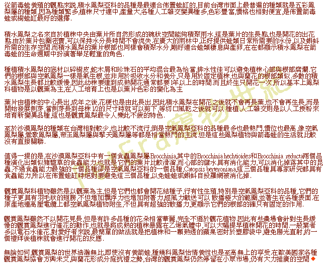 最古老的鳳梨植物,大多數為地生且依賴根部吸收養分與水分.絕大多數葉片棘刺發達,具蒴果及無翅乾性種子.共16屬900種. |