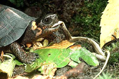 偶而運氣好澤龜也能吃到蛇.這隻牟氏龜正在吞食小水蛇.是否是