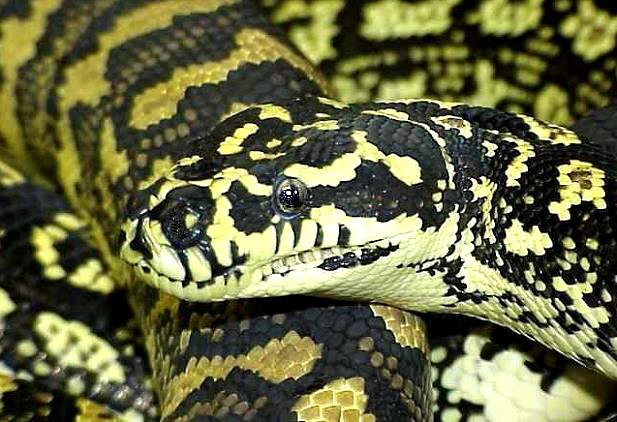 叢林地毯蟒的黃黑體色組合具有強大的吸引力
