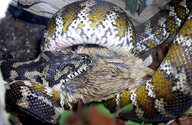 印尼地毯蟒吞食野兔