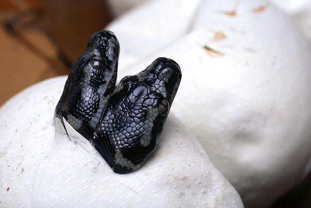 叢林地毯蟒的一卵雙胞胎孵化