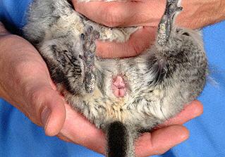 雄性龍貓成體生殖器與肛門相距很遠 |