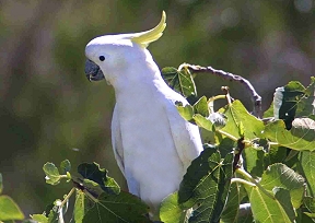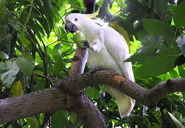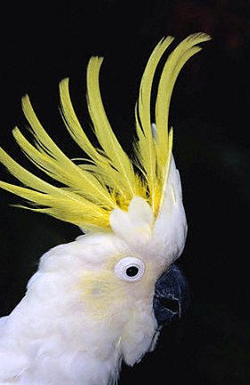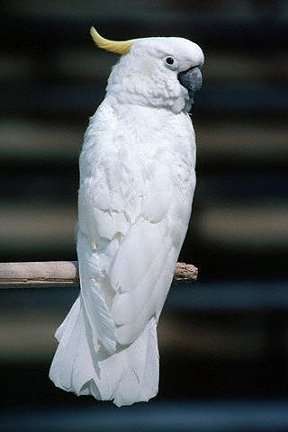 巴旦鸚鵡全身雪白                              黃色 羽冠是表達情緒的工具