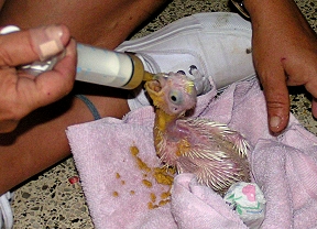 巴旦鸚鵡群會危害農作物                                  巴旦鸚鵡雛鳥喝奶中