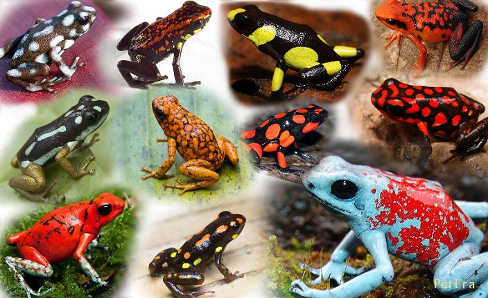 其中樹箭毒蛙屬Dendrobates, 拇指箭毒蛙屬Ranitomeya, 食卵箭毒蛙屬Oophaga與葉箭毒蛙屬Phyllobates等四個屬的種類都具有體色鮮豔的共通特性,都是最受市場矚目的熱門蛙種,