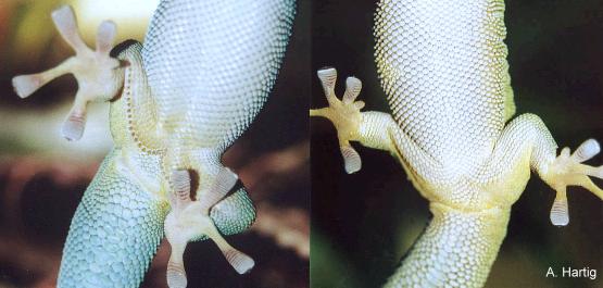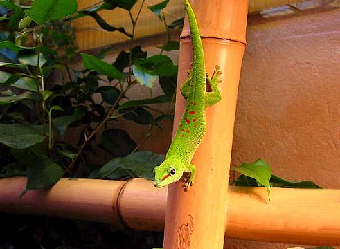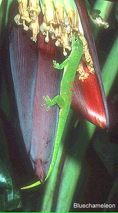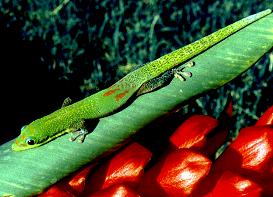 由於是日行性又是樹棲型,所以大部分的日行守宮體色都是以翠綠為基本底色,再搭配其他華麗的紅黃藍等顏色,展現出守宮類中極為少有的鮮豔體色,有人稱牠們是印度洋上的寶石,真可以說是實至名歸.不過日行守宮的皮膚構造與一般守宮不