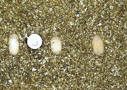 三趾箱龜蛋右邊一顆因為破損而未變色                                  松尾守宮蛋