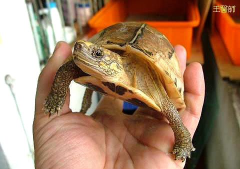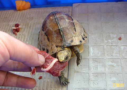 這隻花背箱龜從首次開口吃下朱文錦至今已一個多月,雖然只肯吃各種肉類和小魚,其它的食物還是一樣不吃,不過體重已從不到140公克上升到目前的200多公克,且和人的互動性非常的好,看到人時就會走到面前來,對每個看著牠的人張著大嘴要食物吃;把牠抓起來也一點都不會畏縮,總是不停的在手上動來動去,相信牠已經度過了初期飼養的危險期,平安成長應該是指日可待。