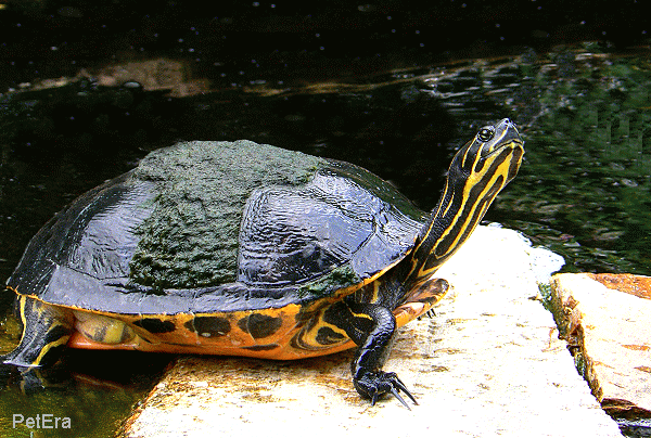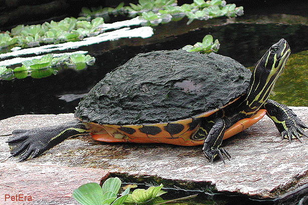 背上長滿藻類的"綠毛"紅肚龜