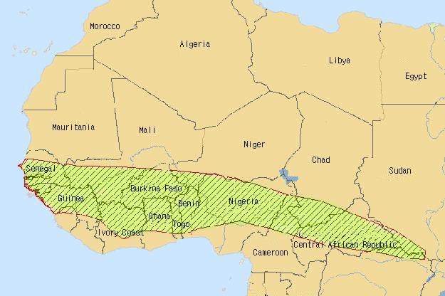 紅椒蛙在非洲西部之分佈區域廣大 |