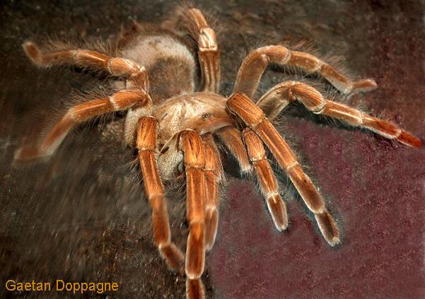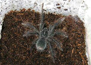 地棲的洞穴型毛蜘蛛,通常在樹木的根部下掘穴棲息.環境佈置可以比照一般熱帶雨林種類.環境溼度可以維持在75-85%之間,小水盆和藏身處所