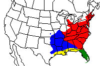 路易斯安那州,阿拉巴馬州和佛羅里達州.分佈區雖然比不上東箱,三