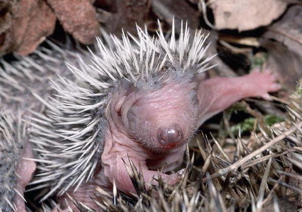 三週的期間轉變為硬刺,刺蝟的刺與豪豬的刺最大的不同就是刺蝟的刺不會脫落,豪豬的刺則在刺中掠食者時會斷離,造成被刺的動物很大的痛楚,刺蝟的刺並沒有這種危險.