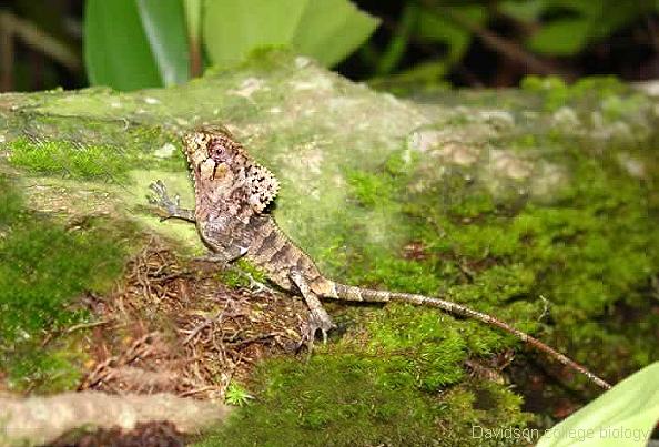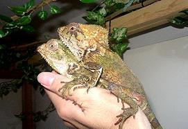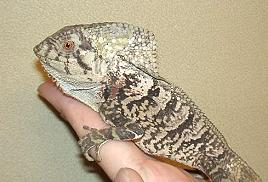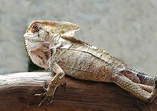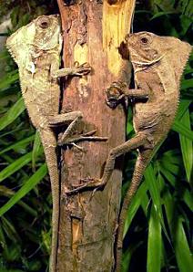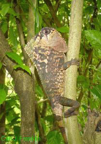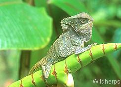 海帆蜥喜歡保持垂直的姿勢                     雄性成體頭冠和肉垂都十分突出