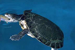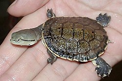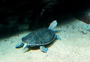 腹甲黑斑是本種特徵每隻都不相同                     阿根廷側頸龜擅泳食量更大