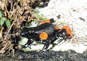 小丑曼蛙體色很類似箭毒蛙 |