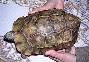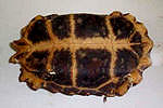 雌雄由尾巴可明顯分辨.左邊為雌龜尾部完全縮入腹甲,而右邊雄龜則大部份外露