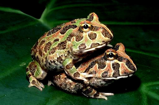 儘管角蛙飼養容易,體格又壯碩,但是繁殖卻並不容易,必須經歷1-2個月的乾燥低溫的所謂冬眠期才能誘發牠們的交配與排卵.這一點可以將牠們放在舖滿潮濕水苔的小缸中再放在陰涼處所,溫度控制在20-21度,讓水苔自然乾掉即可,但缸中還是需要置放小水盆.