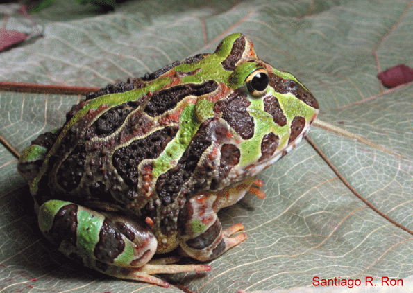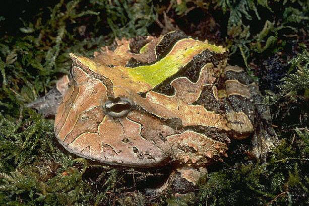 通常是看不見的.在原棲地角蛙的主要食物就是同類的幼體.現在水族館出售供龍魚食用的牛蛙幼體就很適合作為角蛙的食物.當然角蛙也就不適合與其他蛙類或大小差異太大的同類混養.