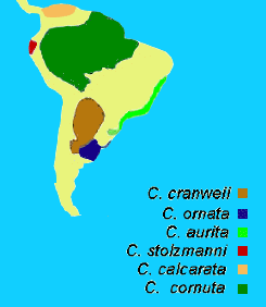 其中草原角蛙和厄瓜多角蛙因為發現數量稀少,所以市場上難以得見.角蛙各品種的原生棲地各自分離幾乎完全不相重疊,所以也各自能夠保持較獨立的體色.但是因為牠們本身的色彩變化就不少,人為的雜交和改良又另外發展出許多變異的體色,再加上白化個體,更使得要分辨正確品種也是越來越困難.目前市場上比較常見的雜交個體就是雄性綠角蛙與雌性霸王角蛙所配出來的個體,稱為蝴蝶角蛙,外型與霸王角蛙十分類似,只有下巴與綠角蛙一樣是白底散佈黑斑,與霸王角蛙漆黑的下巴不同,可以據此來辨別.