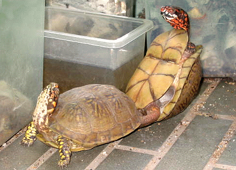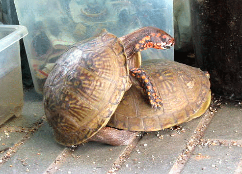 還有一對卡羅萊納三趾箱龜也是不斷進行交配,不過到目前還未下蛋.去年生過一顆蛋,不過慘遭踩扁,希望今年可以成功.