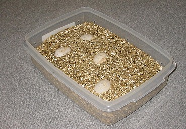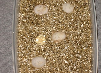 四顆龜蛋安半埋在LYON提供的蛭石中