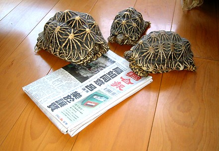 相信許多養有成龜的朋友們都會發現早自每年的九,十月間龜龜便紛紛出現交配與產卵的情形,首先報到的就是劉醫師的緬星,剛孵化的緬星花紋與印星那種蝴蝶狀的花紋的確不同,不過還是很容易混淆.還有一些龜友養的黃頭也都成功孵化了.隨著開放的腳步,相信幾年內將會有許多國產龜龜上市.