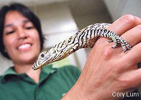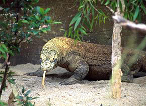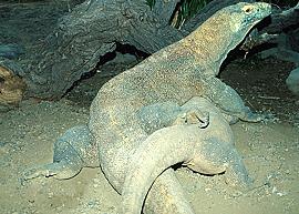 大名鼎鼎的科摩多龍相信大家在Discovery頻道上應該都看過,這種地球上最大的蜥蜴才是真正的巨蜥,甚至是上古恐龍的現代版.體長可達三公尺.野外族群數量現在只有大約2,500-5,000隻.其中雌性卻只有大約350隻.科摩多龍屬於CITES的一級保育類,台灣卻也有少量進口幼蜥.儘管成體體色樸實無華,但幼體可是體色特殊而華麗.幼體通常棲息在樹上直到一公尺左右才會回到地面上活動,這個樹棲期間大約是一年.這是躲避成年科摩多龍襲擊的天生本能.