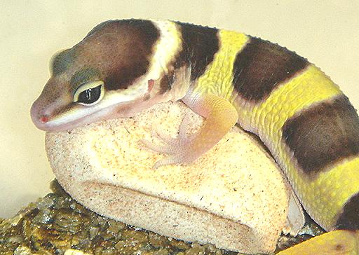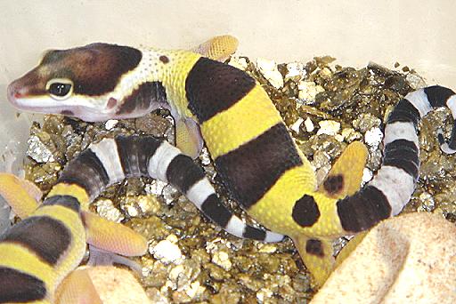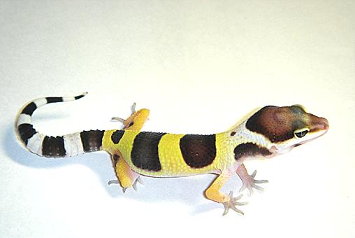 高黃豹紋雄性個體.一雄五雌全部經歷過拒食階段,每隻都瘦到尾巴與四肢一樣細.只好停止餵食,每週試探性餵食幾隻蟋蟀,在一個多月之後,除了一隻陣亡之外,全部又突然開始進食,所幸唯一的雄性安然無恙.真是來去都莫名其妙.