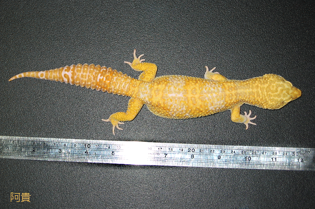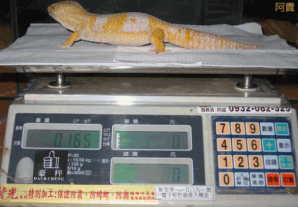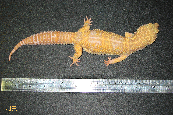 截.這是一項新的紀錄,也是台灣玩家的驕傲.沒錯,巨人豹紋守宮也是美國豹紋守宮大帝Ron Tremper先生的作品.身價當然免不了也是高貴一族.經過站長與Tremper先生的聯絡,阿貴的紀錄已經得到證實,這隻超級巨人守宮的體重確實是Tremper守宮的世界新紀錄.距離Tremper先生的心願,200公克的體重與30公分的體長又邁進了一步.