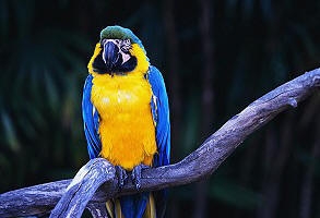2.藍黃金剛Ara ararauna      體長 75-90公分,CITES II,台灣常見的金剛鸚鵡.分佈於巴拿馬,厄瓜多爾,祕魯,委內瑞拉,