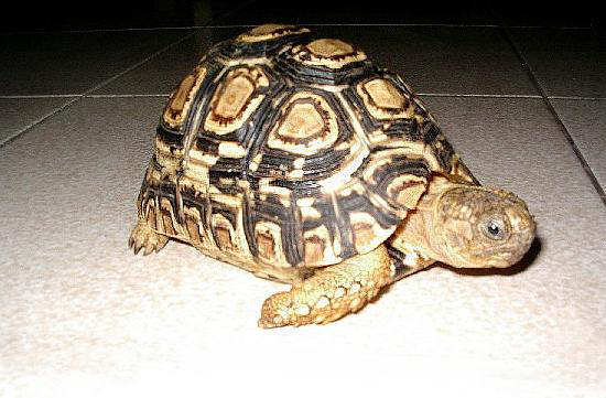 豹龜,最近爬蟲商進口很多,多到像公園樹下的螞蟻,或廚房水管中的蟑螂。這麼多的豹龜,又有什麼不平凡了?這隻豹龜就是與眾不同!牠剛進我家的時候,不怎麼顯眼,唯獨老爸眼光特別。當他抓起這隻豹龜時,左看右看,抓在手中端詳許久。老爸對我養烏龜的事不予以置評,難得心血來潮,對烏龜產生興趣,我倒覺得很意外。