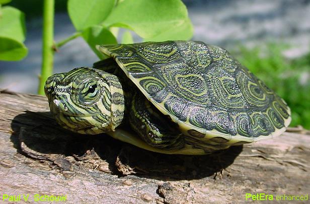 中美洲紅耳龜幼龜背甲花紋十分固定 |