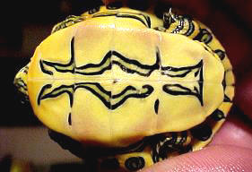中美洲紅耳龜幼龜腹甲花紋較簡單 |
