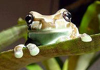 牛奶蛙體型比紅眼樹蛙更肥大,屬於大型樹蛙