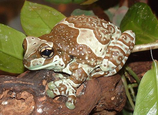 牛奶蛙棲息於南美洲的熱帶雨林區域中,一身獨特的棕色和白色的迷彩,在樹蛙科中並不多見,牠們通常棲息在樹幹上或樹洞中,與一般樹蛙棲息於葉片上或葉片間也截然不同,因此演化出特殊的 棕白保護色.體型上也屬於大型的樹蛙,比紅眼樹蛙來的更大更厚實.也是夜行性的蛙類.牛奶蛙背上佈滿白色疙瘩,在遭受威脅時會分泌出乳白色類似牛奶的微毒液體,嚇阻掠食者的攻擊,所以被命名為牛奶蛙.其實就以牠們的體色來說,就已經很像咖啡上加了牛奶一樣,也很像乳牛的花紋,造物者的神奇展現無遺.