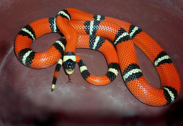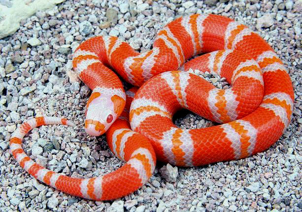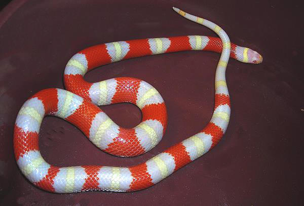 絕大多數的奶蛇都是以黑白紅三色形成基本體色,只是排列組合上有所差異,要清楚辨識是有點困難度的.而相對於其他兩種遊蛇類比較不同的是奶蛇的野生個體本身就具有許多不同的體色
