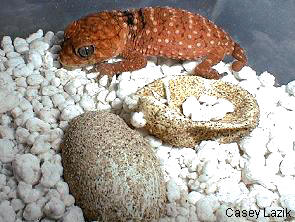 雌雄的辨別與豹紋守宮相同,可以觀察泄殖腔有無凸起.一般來說,雌性的體型都遠大於雄性.雌性每次也只產卵兩顆,在攝氏28-29.5度間60-75天之間可以孵化. 由於牠 們可能不停產卵,因此有必要加以控制次數,以每年產卵六次最為恰當.過度產卵將會危害到雌性的健康與壽命.